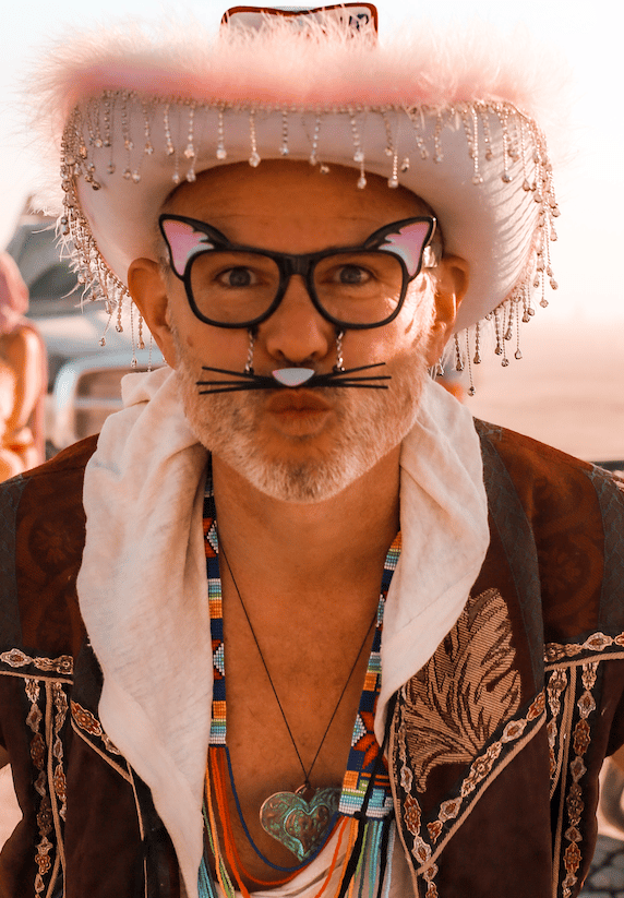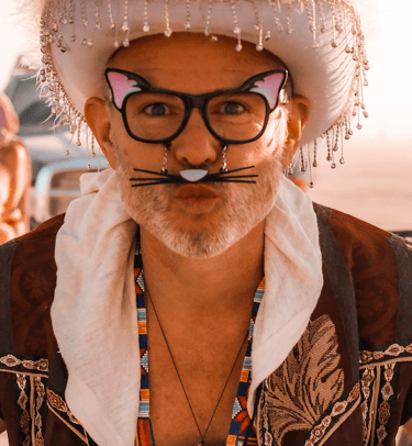 As a self-proclaimed evolving clown, Gary has graced numerous festivals, including Lightning in a Bottle where’s appeared numerous times at the Unicorn Palace and Roller Disco. A founding builder and facilitator of the Burning Man Honoraria, Circle of Doors Tarot, Gary's influence has left an indelible mark on the festival scene, impacting thousands with his playful spirit and contagious enthusiasm.